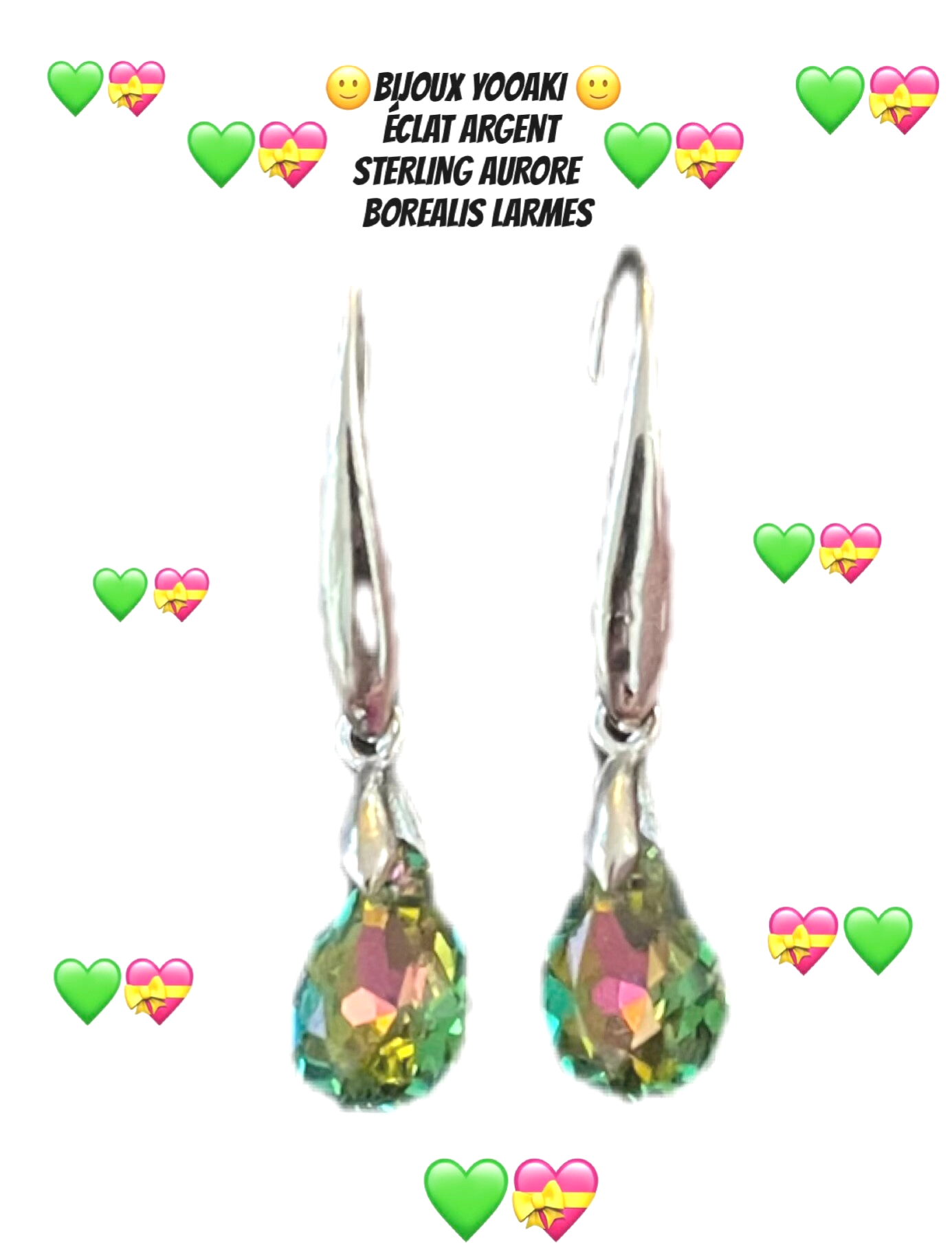 🙂BIJOUX YOOAKI🙂Foryoureyes44 💚💝 ÉCLAT ARGENT STERLING AURORE BOREALIS LARMES💚💝 🙂YOOAKI JEWELRY🙂 💚💝BRILLIANCE STERLING SILVER AURORA BOREALIS TEARDROPS 💚💝